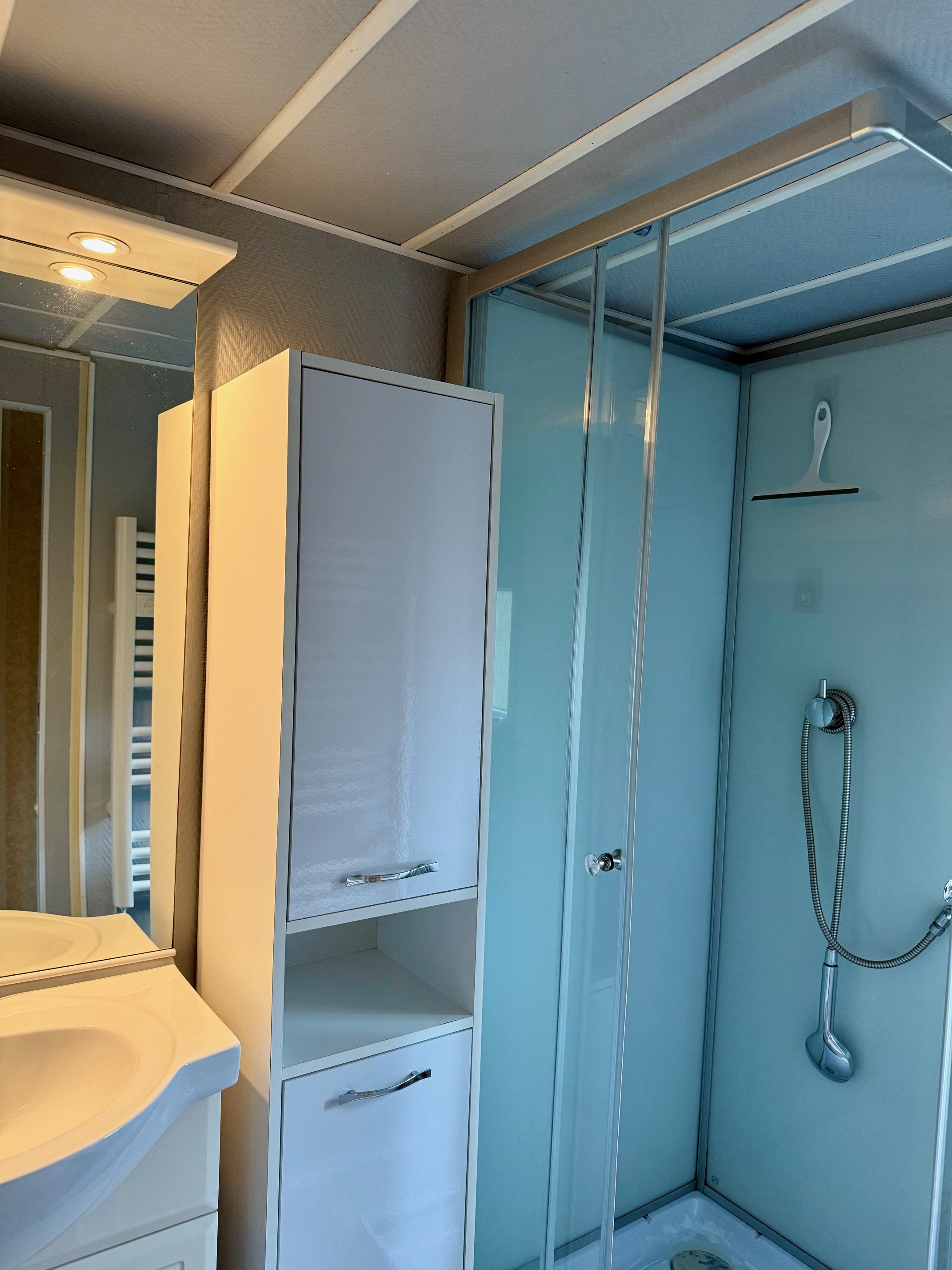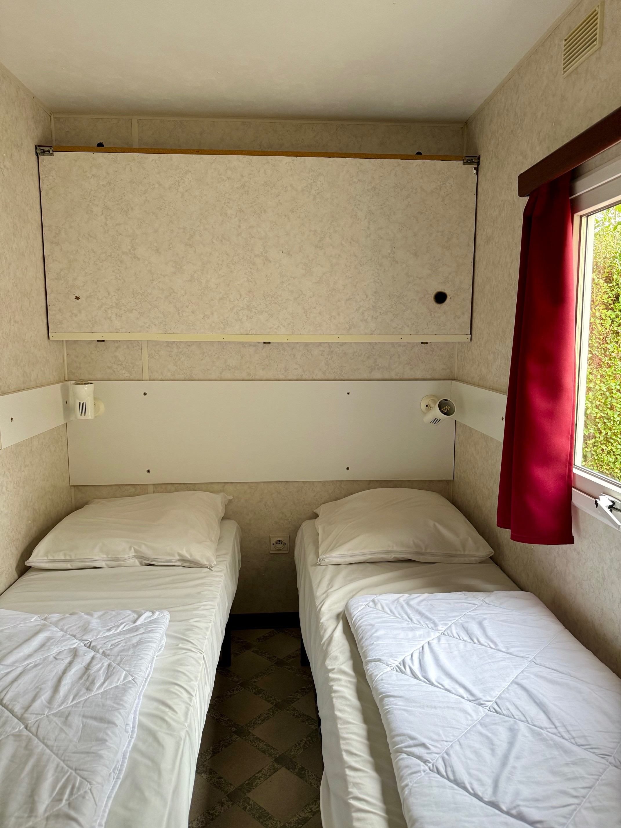 With its bedrooms, our lake-view mobile home is designed to accommodate families of up to four people. Its covered terrace with garden furniture will allow you to enjoy beautiful summer days, from breakfast until nightfall.