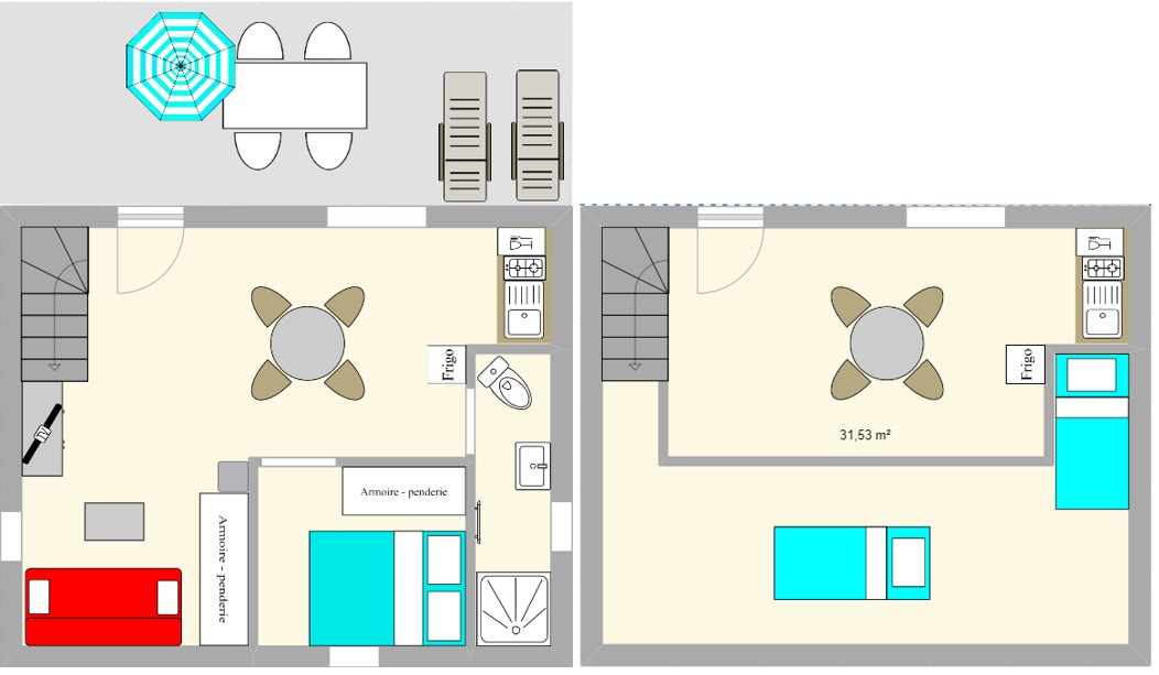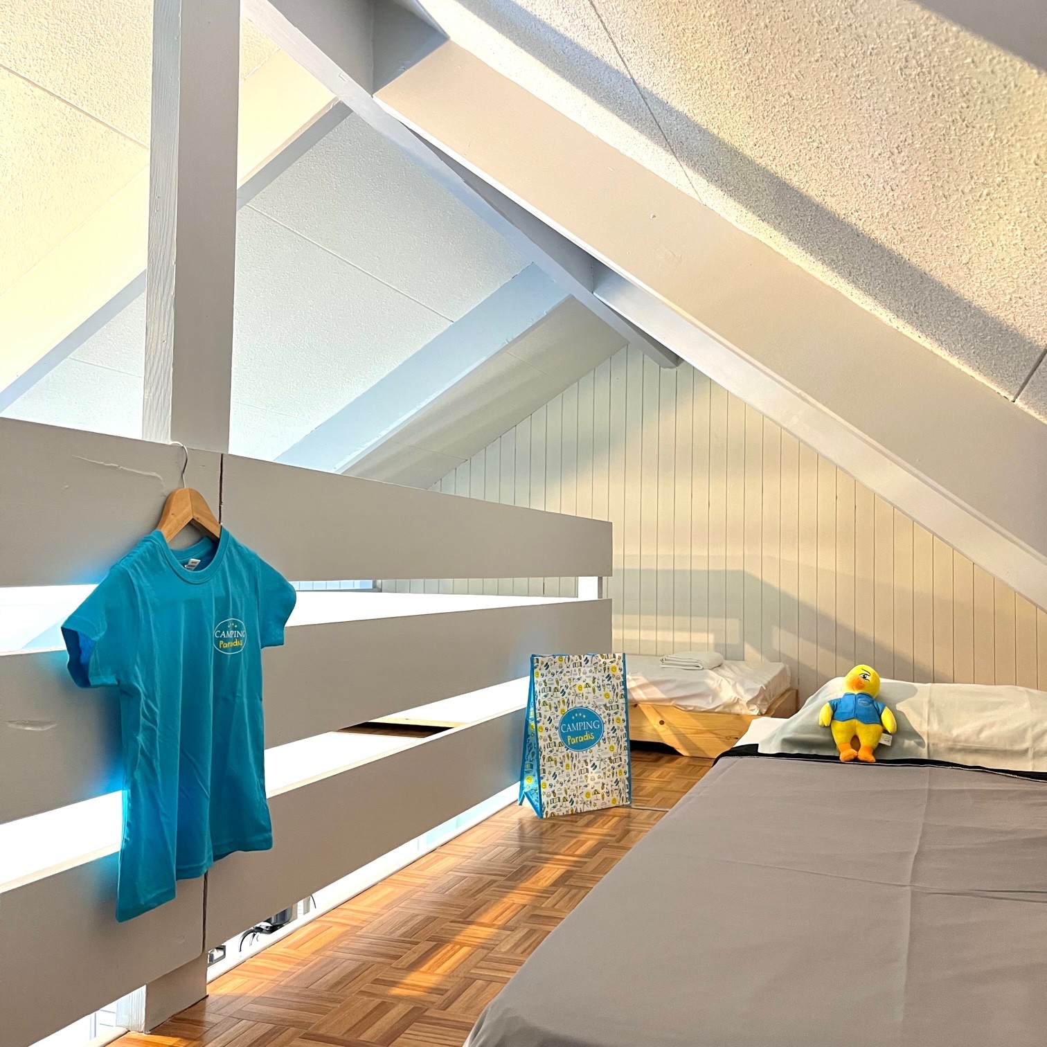 - Mezzanine: 2 single beds side by side 80 x 190cm